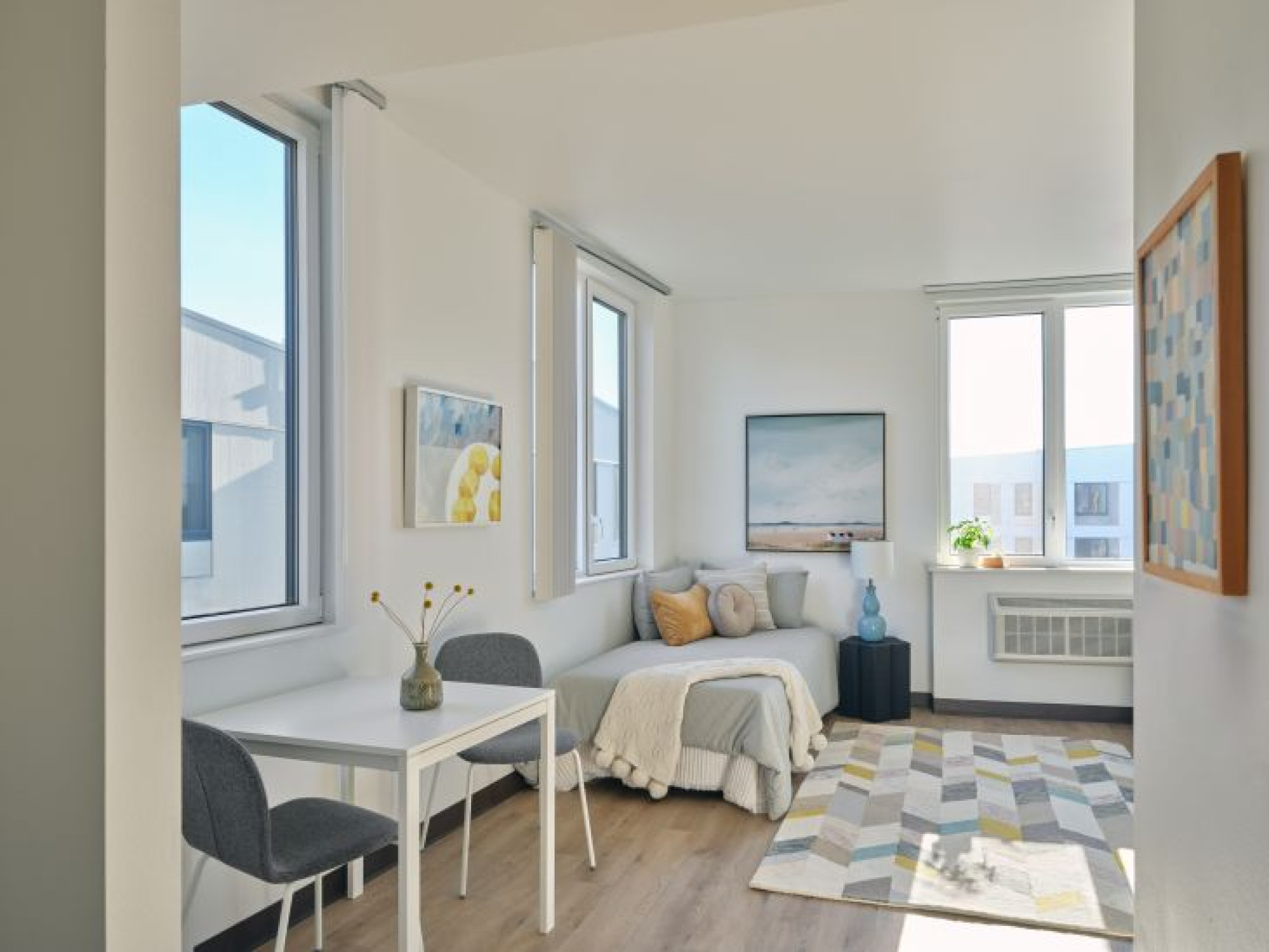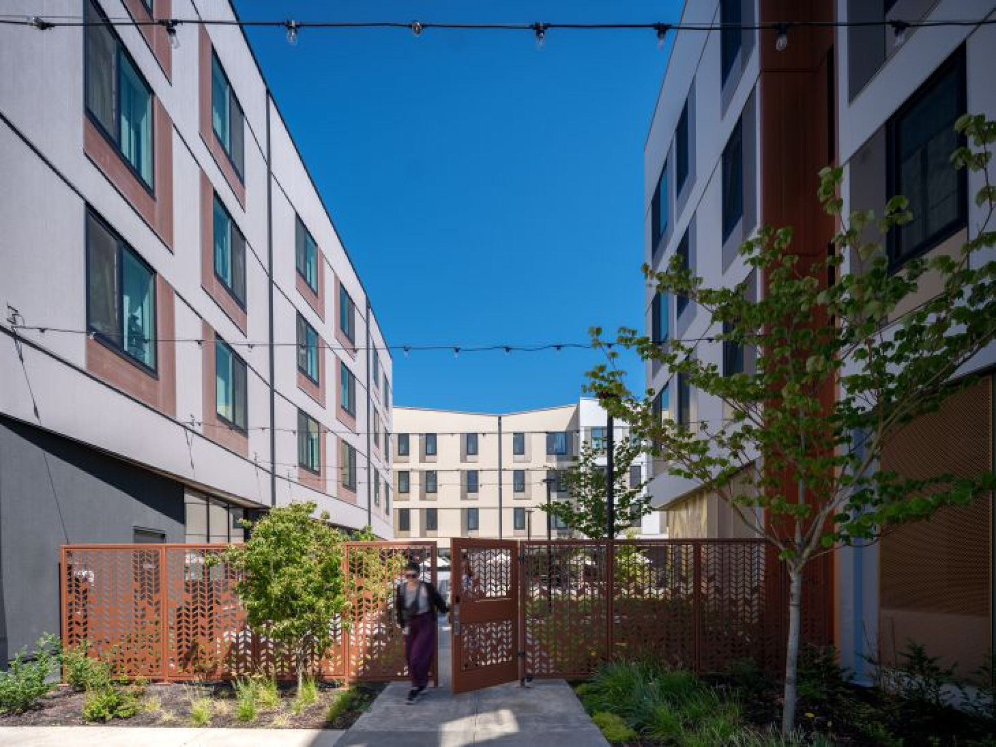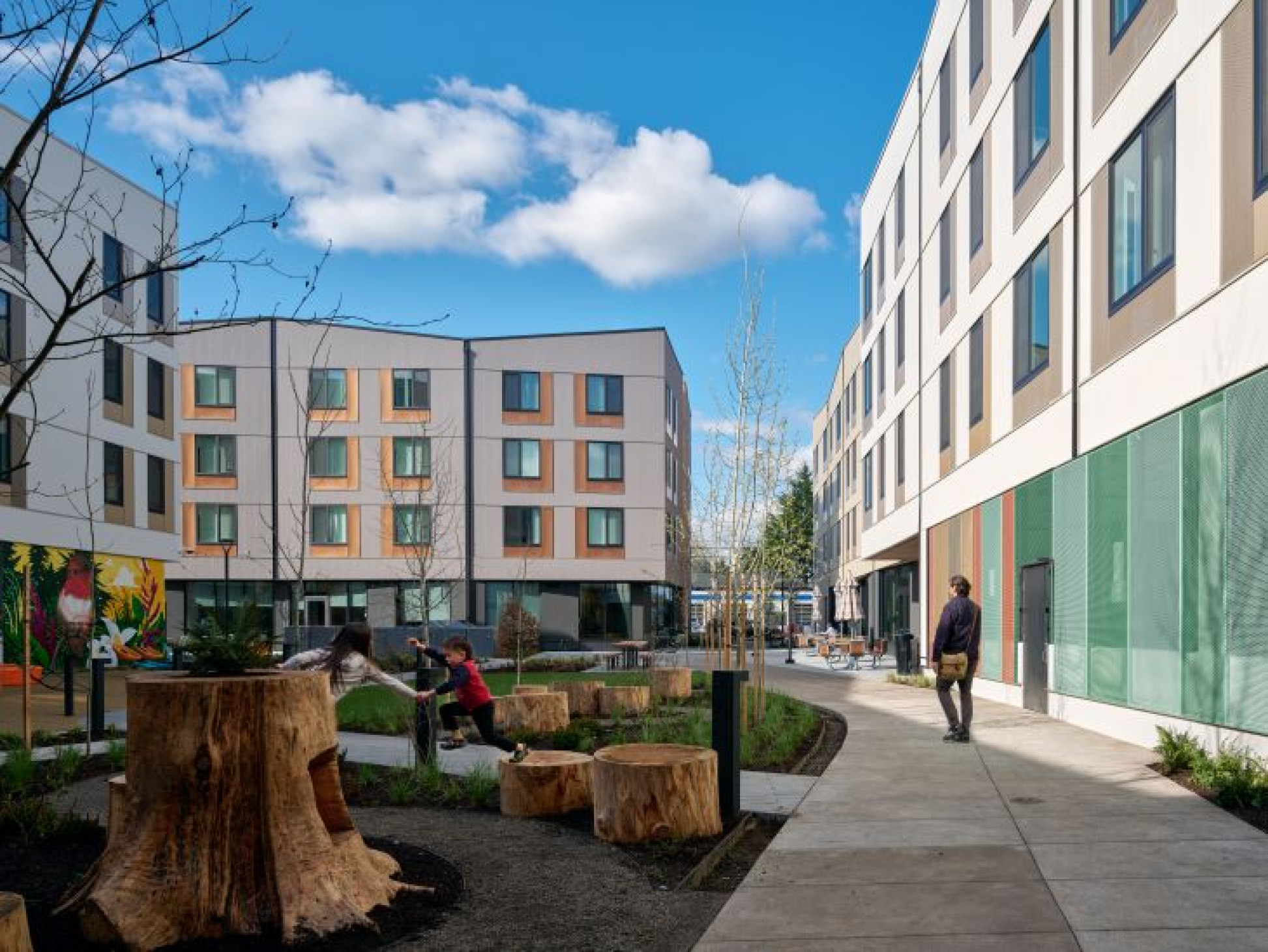 The community features a welcoming and resilient design that fosters connection and opportunity, including a shared courtyard, multicultural preschool, fiber arts studio, and Stone Soup Café, a public café that doubles as a culinary training ground for individuals overcoming barriers to employment. Residents also benefit from on-site amenities including a playground, community garden, fitness room, and culturally specific services tailored to promote equity and stability.